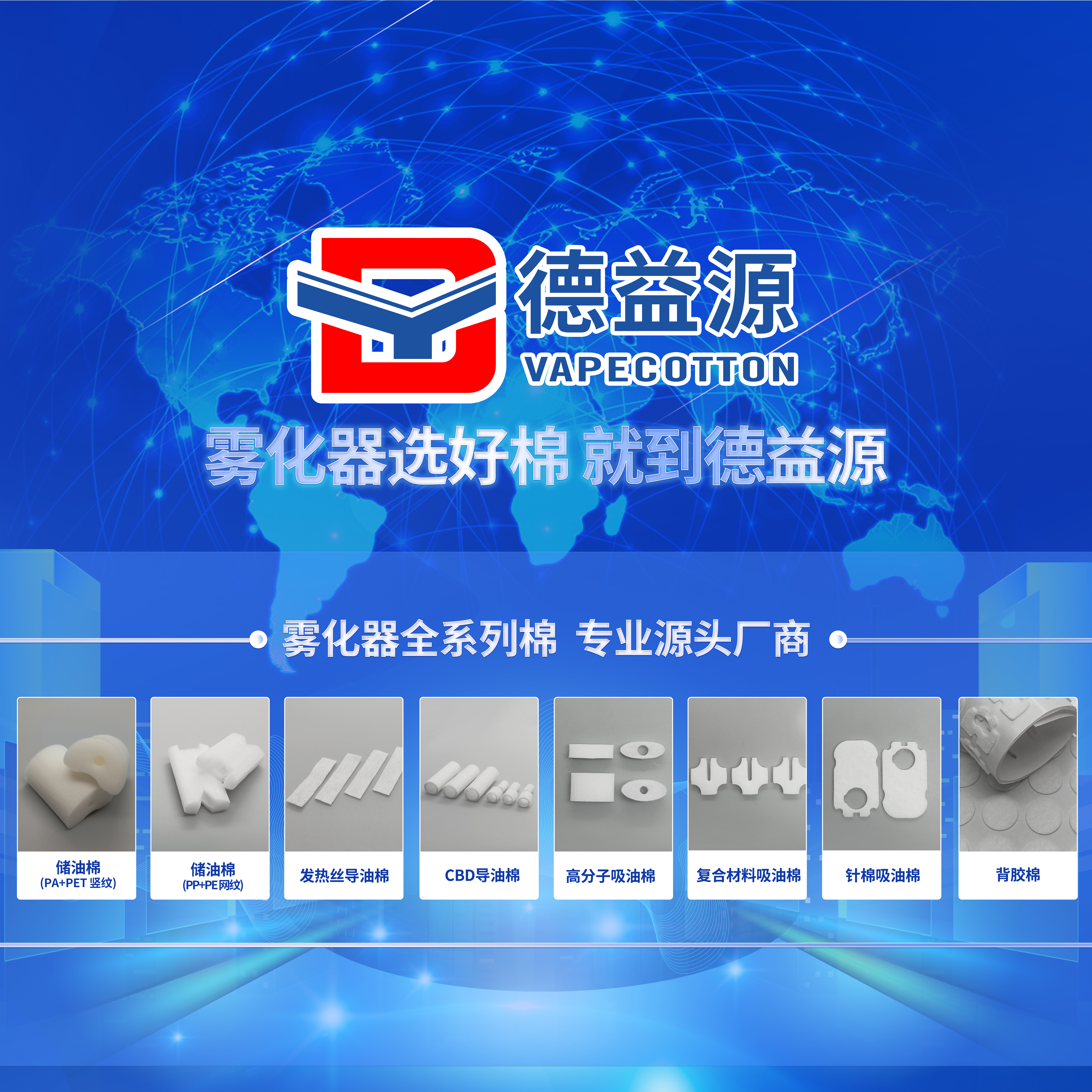 9月07-09日, 德益源將攜帶自研霧化器全系列 棉產(chǎn)品(儲(chǔ)油棉、發(fā)熱絲導(dǎo)油棉、吸油棉、背膠棉、濾嘴棉、CBD導(dǎo)...